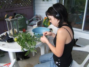 My daughter picked some lemon balm for drying, and did a bit of weeding in the front.