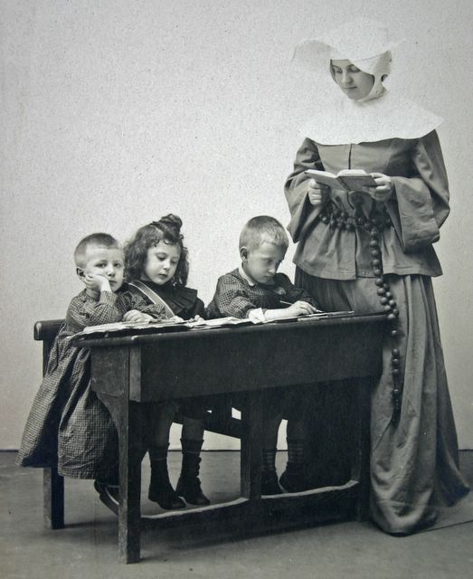 Kindergarten with nun, France, circa 1910, Photographer unknown
